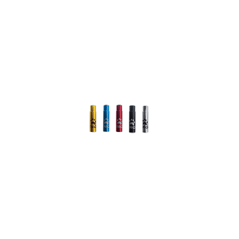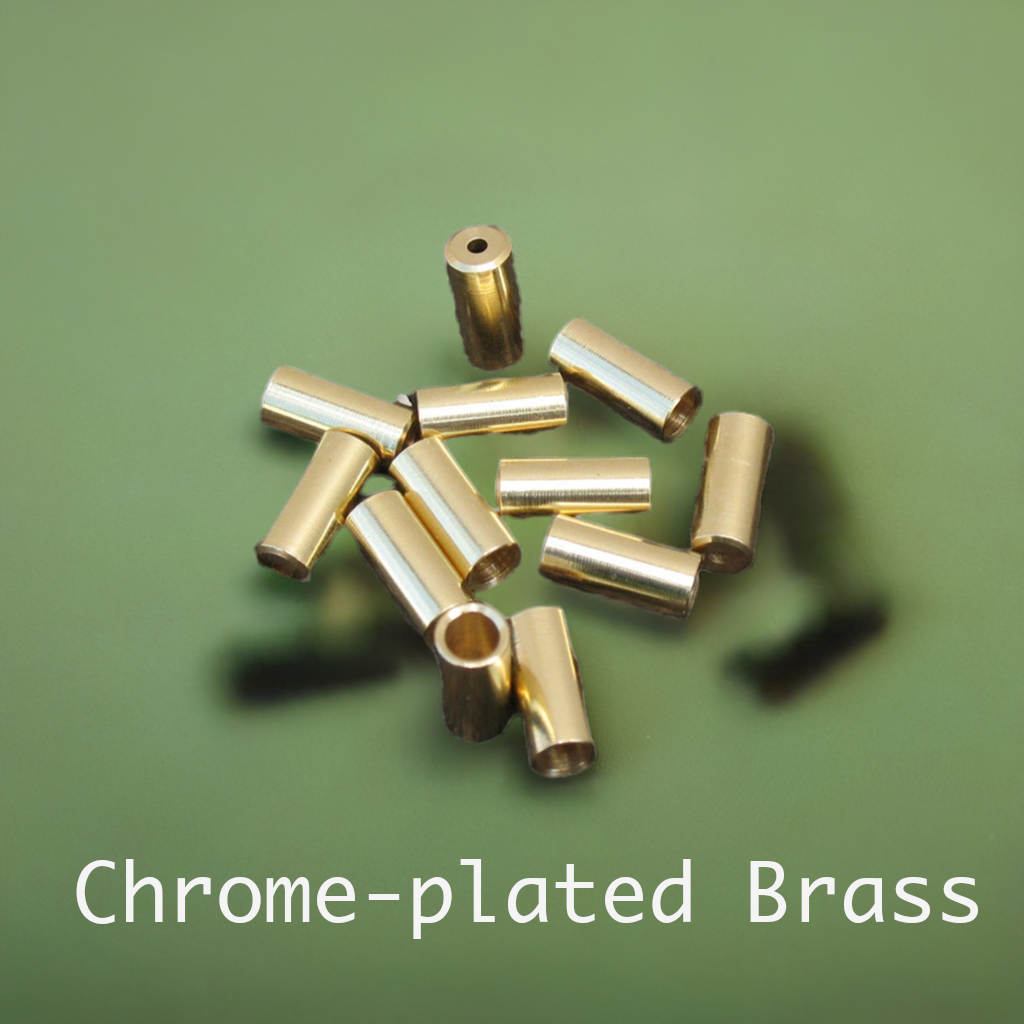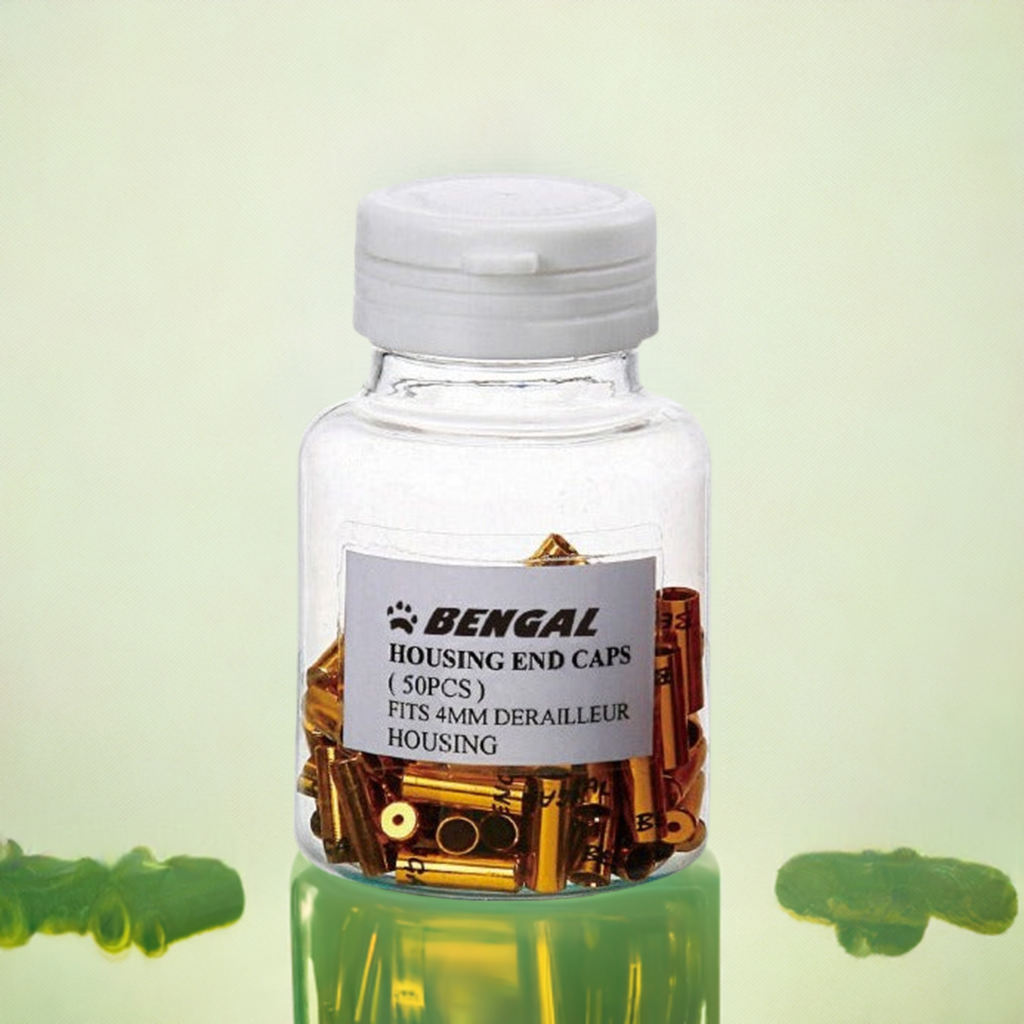 Derailleur housing end caps offered in anodized aluminium, one brass item, and the last two items are made of plastic.